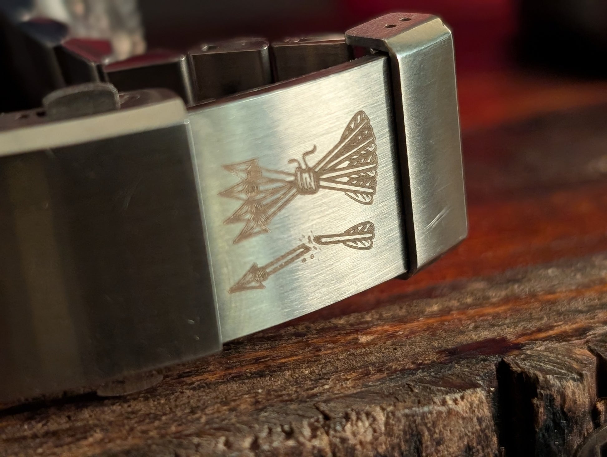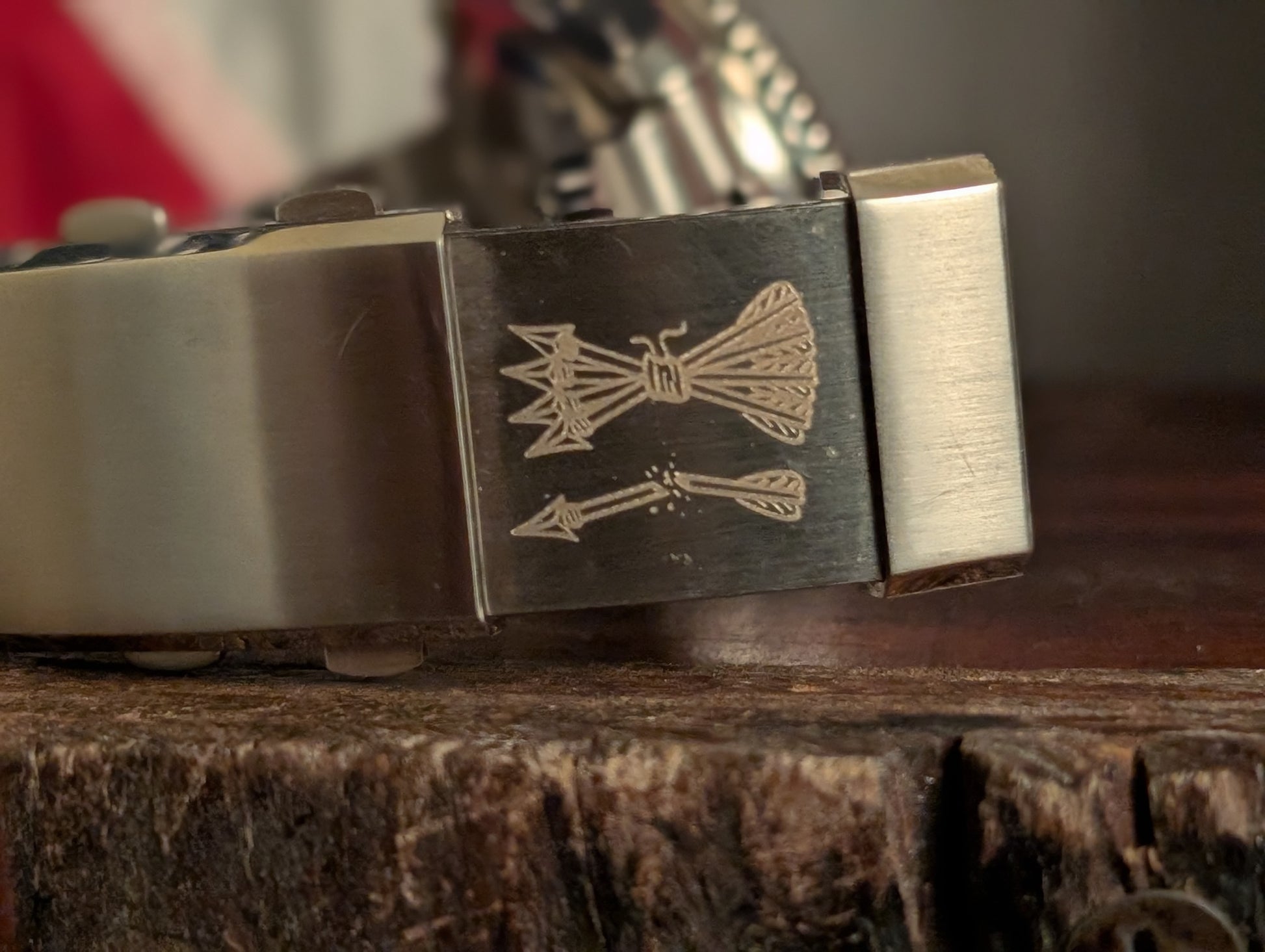 The engraving on the caseback and divers extension is done by an artisan out of Virginia.